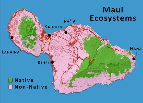 - Over the past 200 years, Maui's native ecosystems have been severely degraded and displaced.