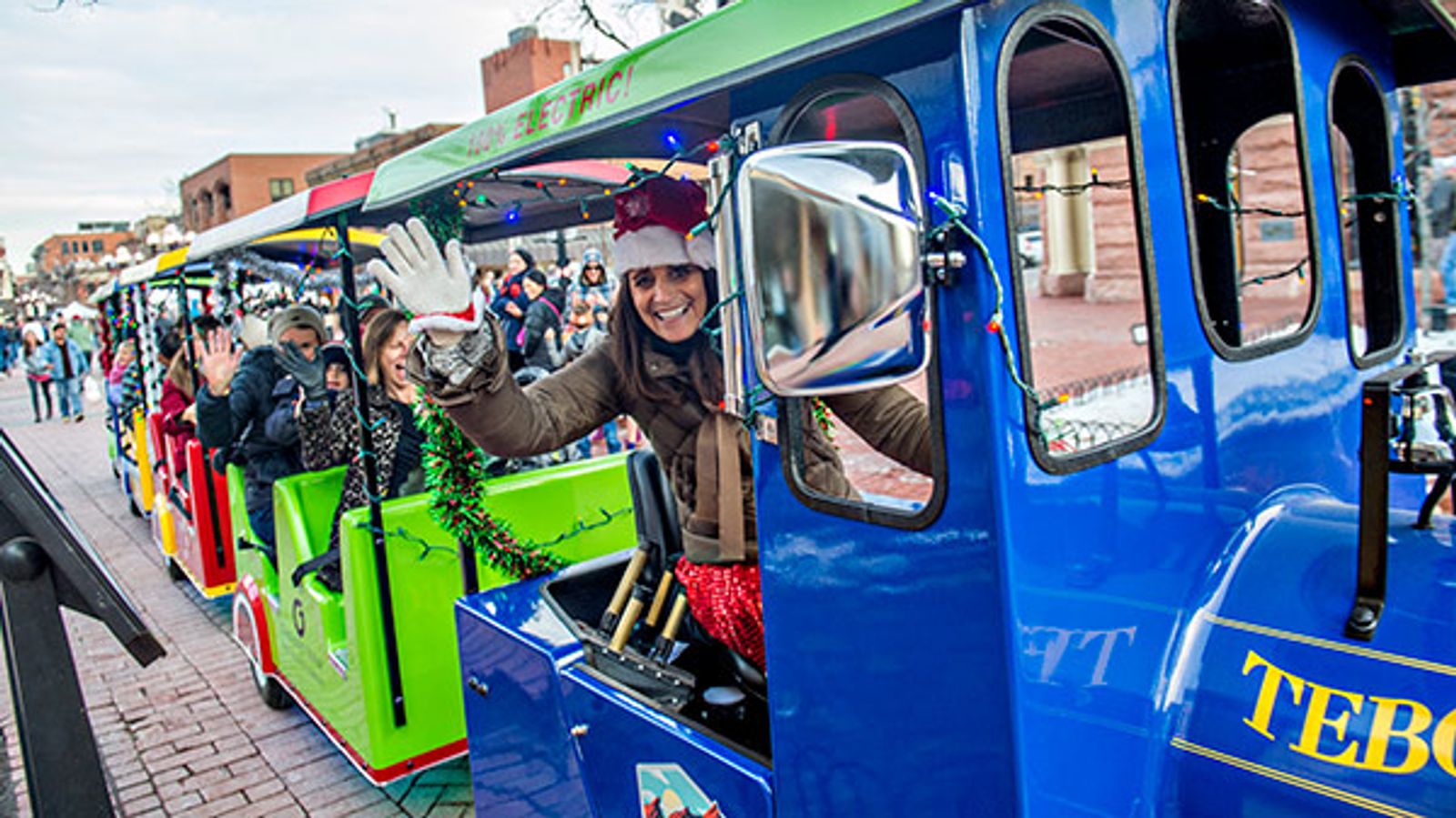 Downtown Boulder offers FREE rides on the 100% Electric Tebo Train seasonally decorated as the Snowflake Express during St Nick on the Bricks to provide another activity for families who come to visit Santa on the one and only Pearl Street Mall for children ages 10 and under (along with accompanying adults).