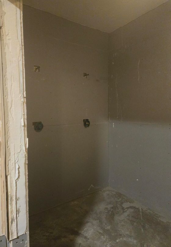 We’re making real progress. New sheetrock is up, and we’re getting ready for the next big step: tiling the floors and walls!