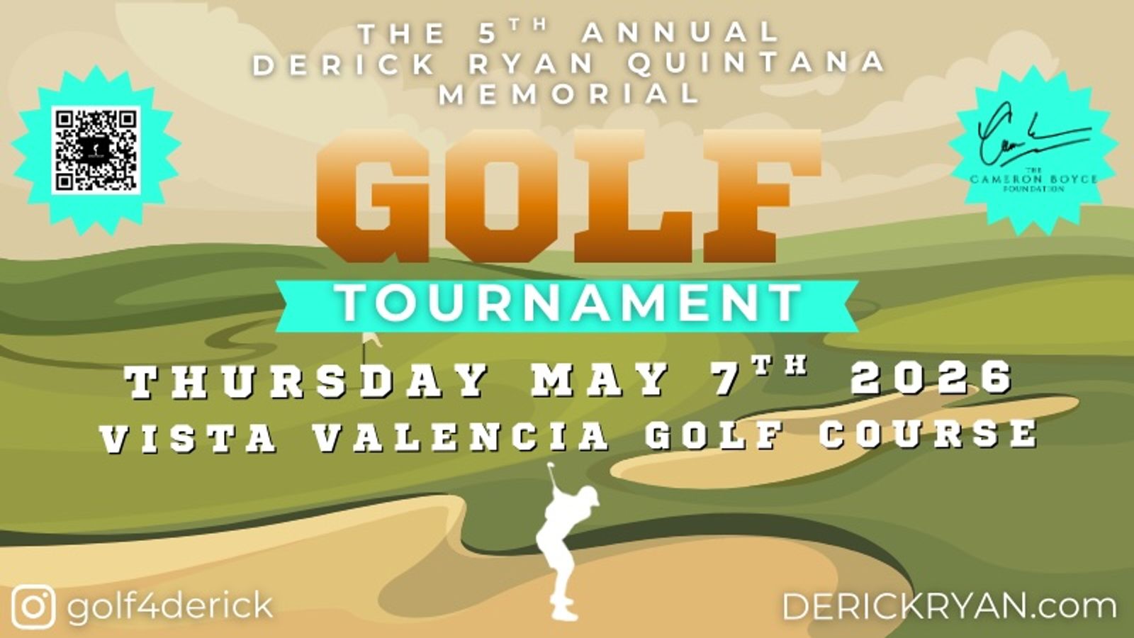 The Fifth Annual Derick Ryan Quintana Memorial Golf Tournament will be held on May 7, 2026 at Vista Valencia Golf Course in Santa Clarita, CA.